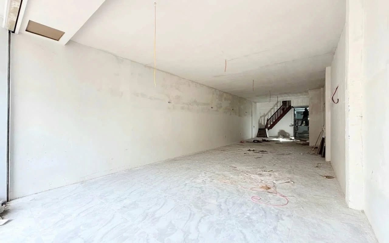 Hiện trạng: Nhà mới, thiết kế thông suốt hoàn toàn, không vướng cột, giúp khách thuê tối ưu hóa không gian trưng bày và vận hành.
